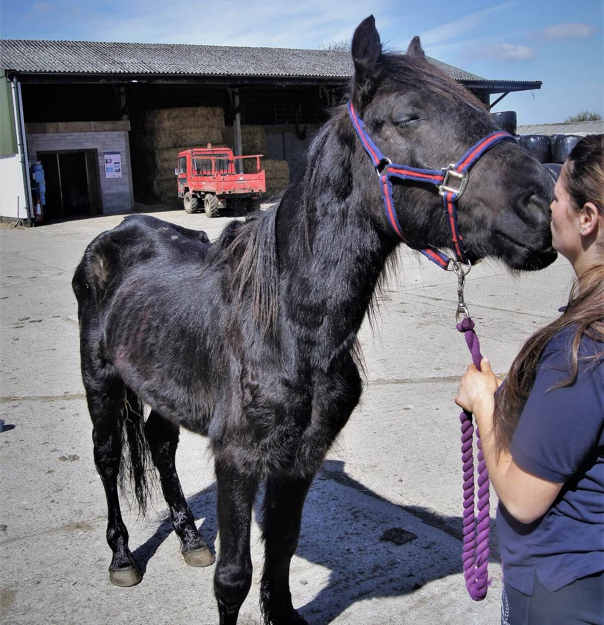 Gunner, a Welsh Section D gelding was rescued in March 2013 in an emaciated state with terrible rainscald (sore and infected skin caused by being left cold and wet for long periods). He was less than 3 years old at the time and should have been full of energy but the young cob showed no interest in life.