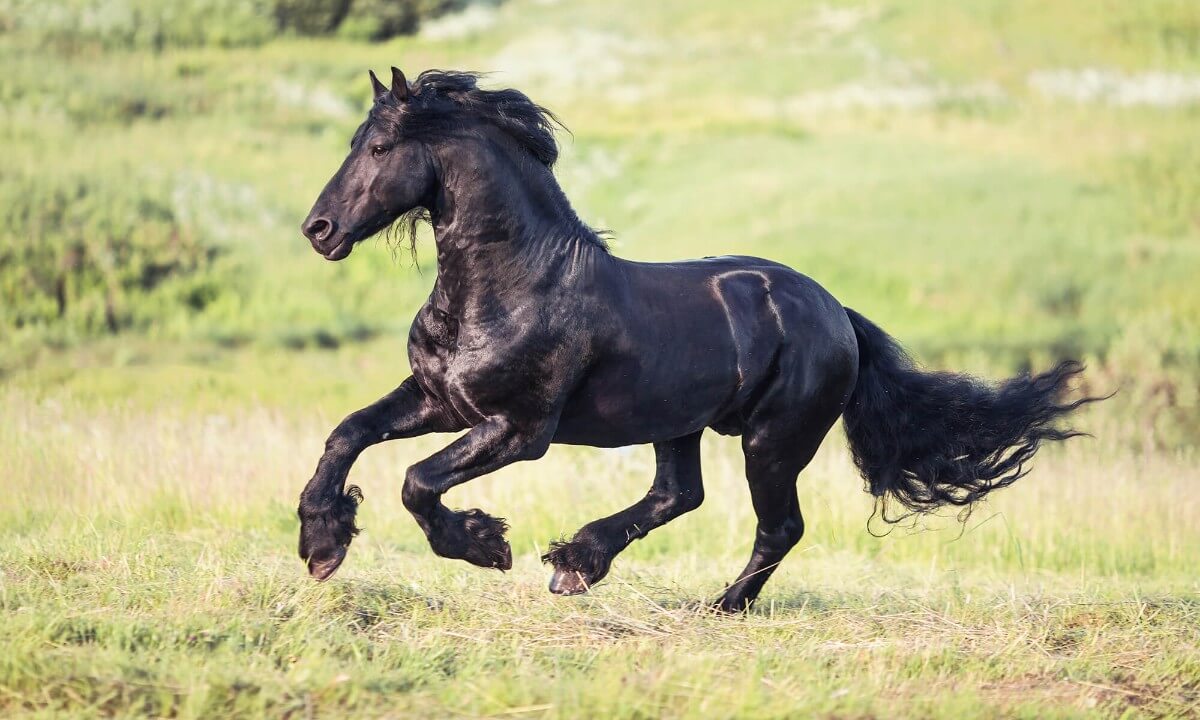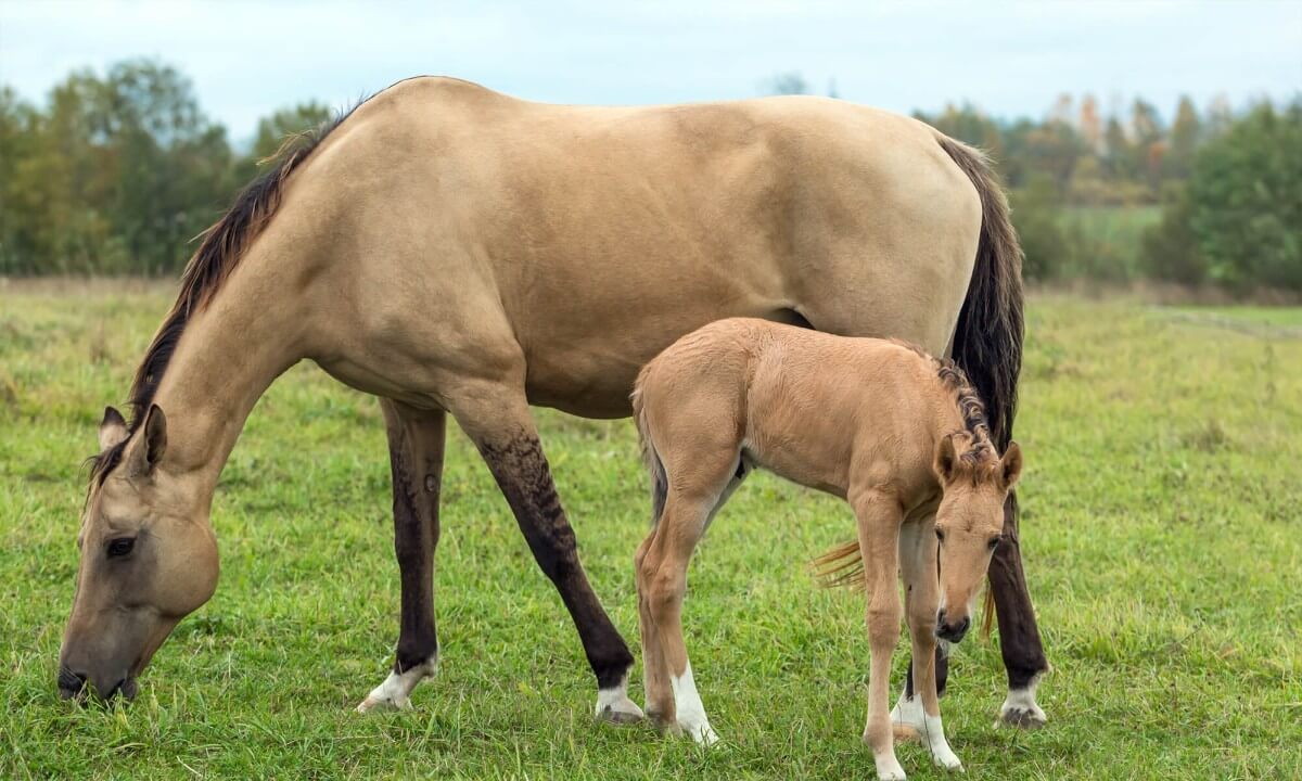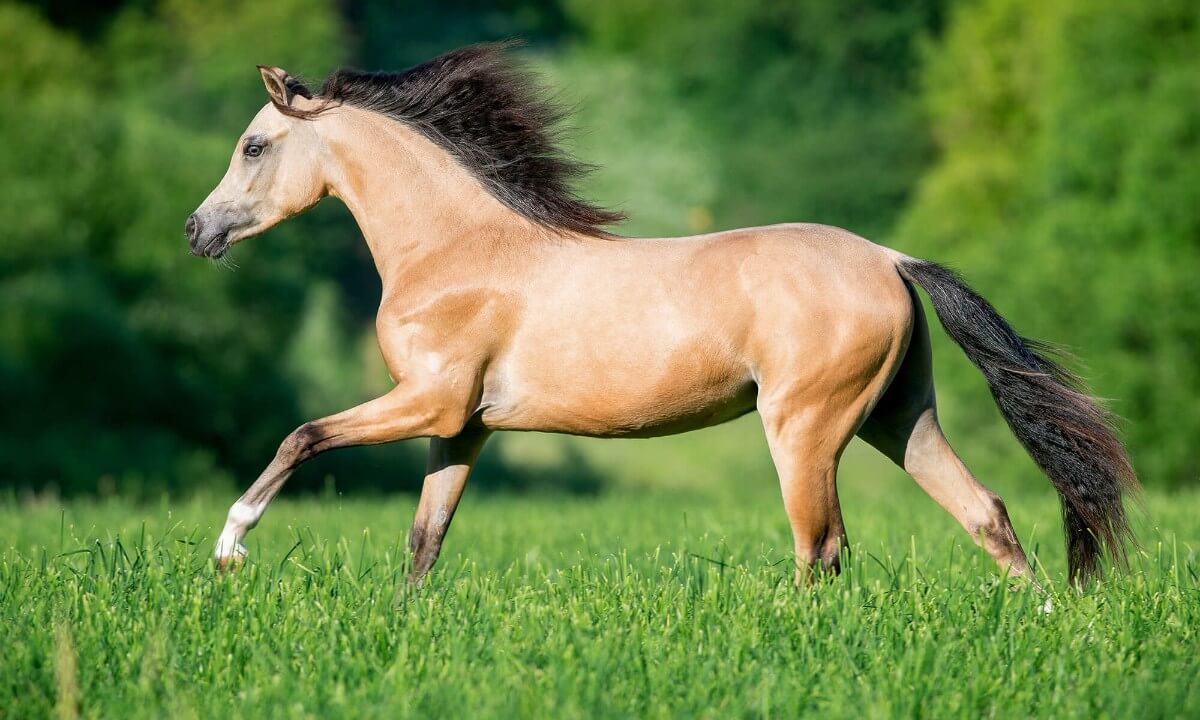 Buckskin horses vary from a creamy golden to rich golden colour with black points, mane and tail.