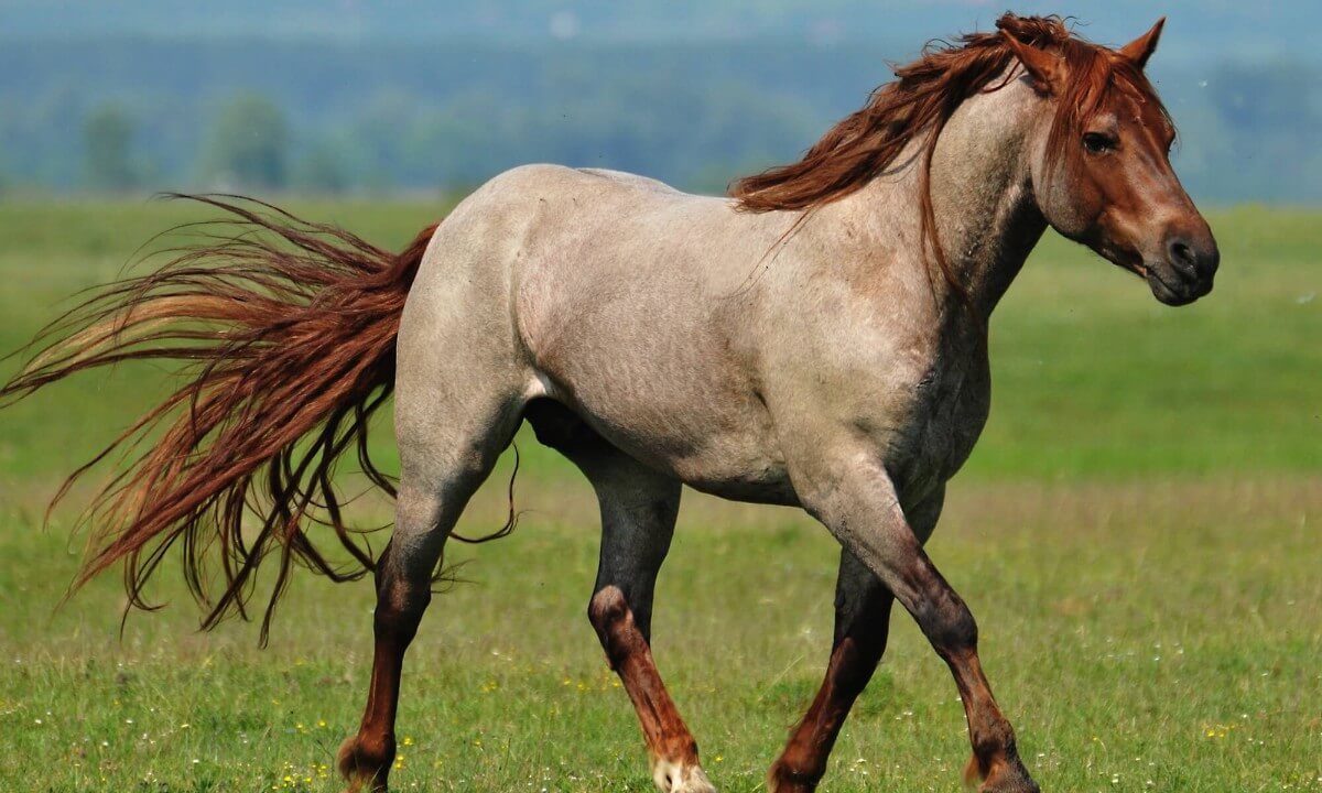 Roan is a coat pattern with white hairs ticked through the coat and can be combined with any colour.