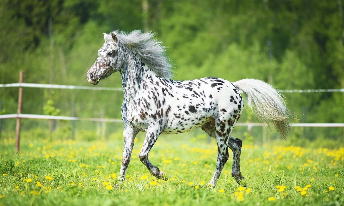 Spotted is a coat pattern that can be combined with any colour. There are several distinct spotted patterns and each spotted horse is unique.